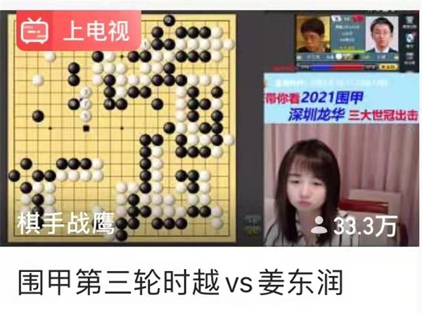 今日虎牙直播對深圳龍華隊的現(xiàn)場講解點評沖上了33.3萬人次的大關,人氣可謂一路上升!職業(yè)女棋手戰(zhàn)鷹解說生動有趣,棋迷們聽得也過癮。再有“龍哥”“申一冠”的迷粉,直播室熱鬧非凡!戰(zhàn)鷹是圍棋知名主播,作為深圳龍華隊網上直播合作人,為龍華隊的宣傳還真是帶來不小的效應!明天繼續(xù)吧。