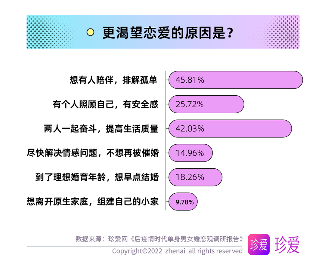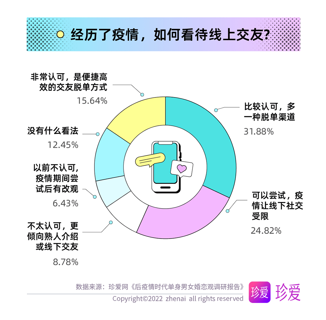 讀特客戶端·深圳新聞網(wǎng)2022年6月14日訊(記者 葉梅)疫情讓人們的生活狀態(tài)、工作方式和個人習(xí)慣都發(fā)生了顯著變化,而對單身人群而言,疫情三年他們對感情的態(tài)度又有哪些改變?現(xiàn)在的他們?nèi)绾慰创H密關(guān)系?珍愛網(wǎng)聚焦后疫情時代單身人群的婚戀觀發(fā)起調(diào)研,探究疫情期間單身人群在戀愛期待、擇偶標(biāo)準(zhǔn)、脫單難度等方面的變化。本次調(diào)研共回收問卷9862份。