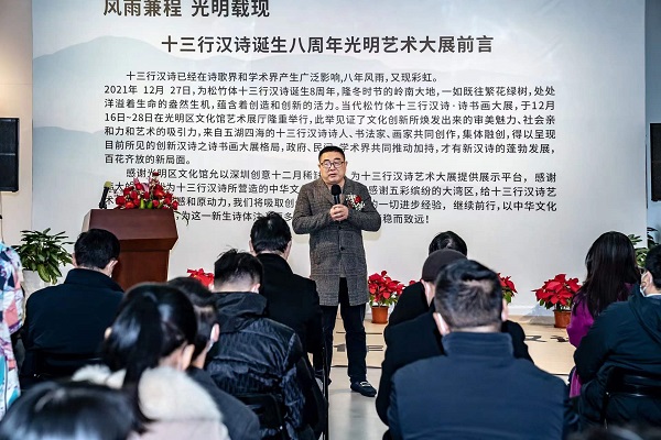近日,國(guó)家社科基金項(xiàng)目“當(dāng)代漢詩(shī)創(chuàng)新詩(shī)體研究”階段性成果展——十三行漢詩(shī)書畫作品展,于光明區(qū)文化館成功舉辦。本次展覽集中展示本項(xiàng)目重要研究成果、全國(guó)各地新漢詩(shī)詩(shī)人的原創(chuàng)十三行漢詩(shī)之書畫作品等。十三行漢詩(shī)創(chuàng)立八年以來,得到了海內(nèi)外詩(shī)人的廣泛關(guān)注,在國(guó)家社科基金研究團(tuán)隊(duì)精研闡釋的基礎(chǔ)上,得到了學(xué)術(shù)界的 ...