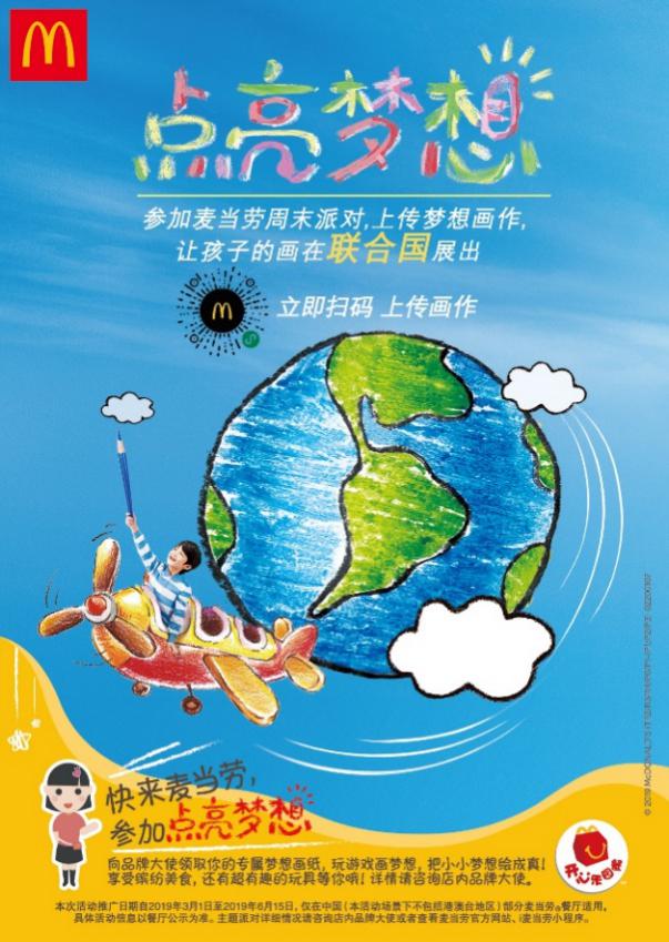 2019年3月23日起,麥當勞在廣州、 惠州、 東莞 、 肇慶、武漢等全國19個城市陸續(xù)舉辦“夢想加油站”活動,展示孩子們的作品,并且邀請他們共同參與集體畫作。 (常軍平)