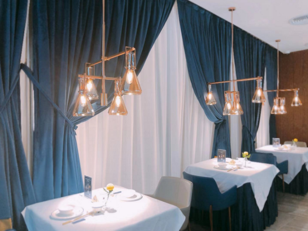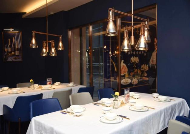 密室的大門,區(qū)隔開的完全是兩種不同的風(fēng)格。實(shí)驗(yàn)室風(fēng)格VS LOFT風(fēng),密室玩的是神秘的科學(xué)實(shí)驗(yàn)室氛圍,大堂則是完全敞亮通透的空間,整體以大叔紳士藍(lán)、玫瑰金為主色調(diào),線條利落的天花板吊頂,吊燈暖暖的光線投射在擺放講究的餐具上,浪漫又小資,再搭配大理石紋水泥地磚、木紋墻藝等,讓整個(gè)空間保持和諧統(tǒng)一的氛圍,又展現(xiàn)出豐富的層次感。廚房直接采用明檔的空間設(shè)計(jì),衛(wèi)生情況一目了然,除了大堂,還設(shè)有特色VIP室和半透明宴會廳,適合有重要會談和生日宴會需求的朋友。