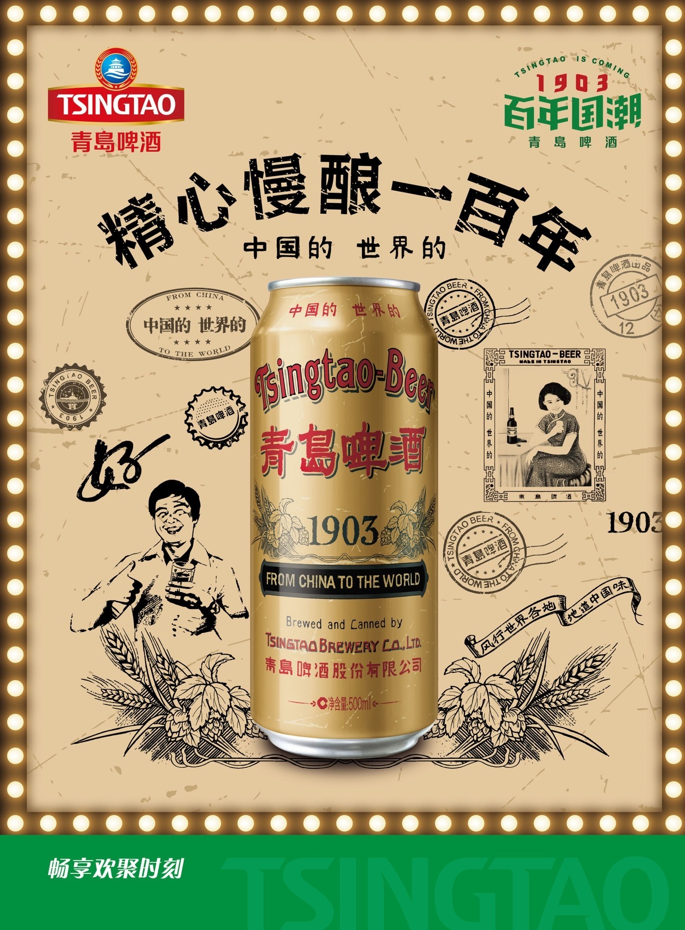 經(jīng)典1903國潮罐是青島啤酒“向經(jīng)典致敬,再造精釀傳奇”理念下推出致敬經(jīng)典的力作,采用青島啤酒1903年“兩段法低溫長(zhǎng)時(shí)間慢熟”獨(dú)特且傳統(tǒng)的釀造工藝,始終堅(jiān)持工匠精神,從原料篩選到工藝釀造的每一個(gè)環(huán)節(jié),都像雕琢藝術(shù)品一樣精致打磨,精心慢釀,造就了麥香濃郁醇香四溢的口感和體驗(yàn),其罐體復(fù)刻了百年前經(jīng)典瓶貼畫面的匠心細(xì)節(jié),復(fù)古元素與國際時(shí)尚潮流融于一體,是復(fù)古和時(shí)尚的典范。