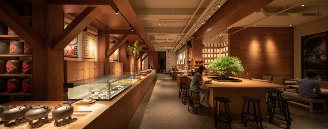 “一個溫暖的會客廳”是tea’stone對所構(gòu)建的茶空間的定義,也是他們對其所提倡的茶美學(xué)生活的表達(dá)之一。tea’stone團隊有著深厚的空間美學(xué)造詣,在傳統(tǒng)的基礎(chǔ)上做減法,沉浸式的開放空間,選取東方美學(xué)的核心因素,以傳統(tǒng)梁柱,斗拱和椽檁,勾勒出當(dāng)代簡約的茶空間,呈現(xiàn)出精制溫暖的格調(diào),家私、櫥窗、花藝凡見種種,皆散發(fā)著和諧雅致的美感。簡潔,現(xiàn)代,精致,溫暖,再結(jié)合“一人一席”的飲茶方式,讓喝茶這件事完整靈動,并且稱得上具有美感的生活方式。難怪能看到越來越多的人們抱著筆記本坐在tea’stone里面獨處、辦公、會友?,F(xiàn)代中國人的“第三空間”從此又有了新的選擇。