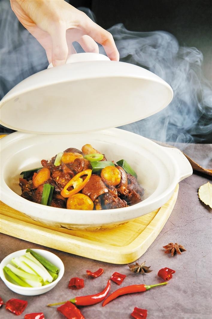 羊肉煲是廣東人必吃的一道暖冬美味之一,譚師傅以傳統(tǒng)粵菜菜系的制作方法呈現(xiàn)老廣東正宗本味。選取來自山東高山上自然滋養(yǎng)的黑山羊,以天然青植及精挑粗糧為食,因而肉質(zhì)更加細嫩緊實飽滿。以肥瘦相間,口感軟綿的羊腩肉為主料,利用白酒的酒香與火紅南乳的脂香使羊肉的鮮香味兒更上一層,清水煲制120分鐘,待其汁水收盡即成。