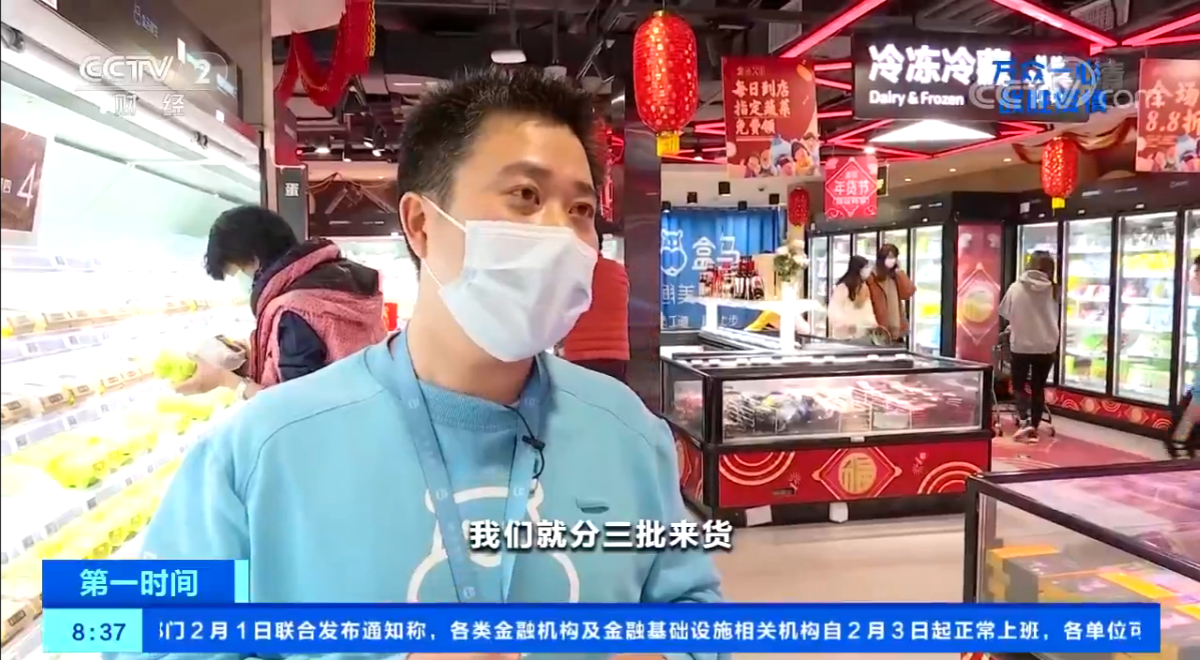 “排面要整理一下。”來自湖北的鐘天平是盒馬鮮生超市員工,他告訴記者,春節(jié)前,因?yàn)殛懤m(xù)看到疫情的消息,他和愛人取消了返鄉(xiāng)的車票,但這也是他這么多年來所經(jīng)歷的,最不尋常的一個。初一初二休息的鐘天平,大年初三就碰上了搶購。“顧客排長隊(duì),從9點(diǎn)鐘排隊(duì)排到1點(diǎn)鐘左右,貨架上的蔬菜、肉以及禽蛋奶,甚至是油米面都被一掃而空?!?/p>