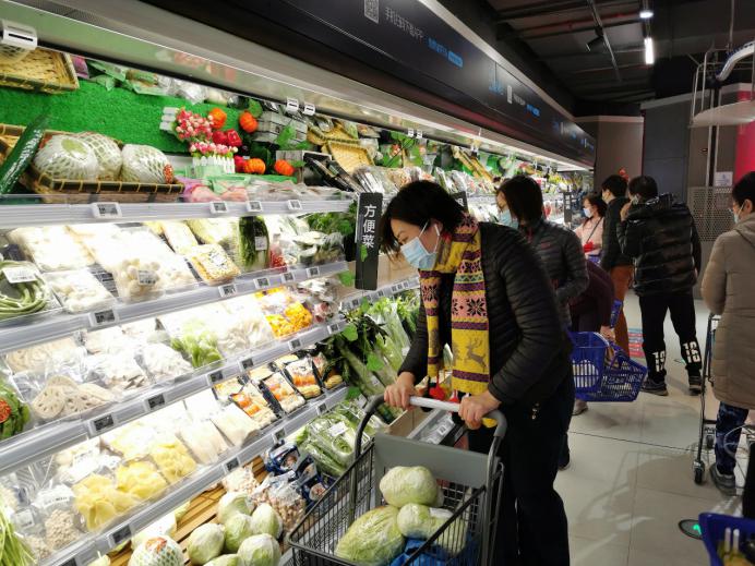 實際上,春節(jié)期間,整個市場的貨源能夠保障市民正常需求,但一旦謠言傳開,有市民擔(dān)心會“封城”,商品進(jìn)不來,便開始大量囤貨,需求暴增打破了市場的供需平衡,各大商超市場手忙腳亂了起來。