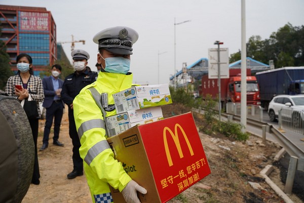 你們在一線戰(zhàn)疫,我們來為你補給!隨后,市關(guān)愛辦攜手伊利集團、麥當(dāng)勞先后前往光明羌下公安檢查站、寶安區(qū)松安防疫檢查點,為正在一線忙碌的工作人員,送上愛心牛奶與熱乎乎的愛心午餐?!澳銈冃量嗔恕?、“繼續(xù)加油”……每發(fā)放一次牛奶與午餐,工作人員都不忘了戰(zhàn)疫者們致敬致謝。