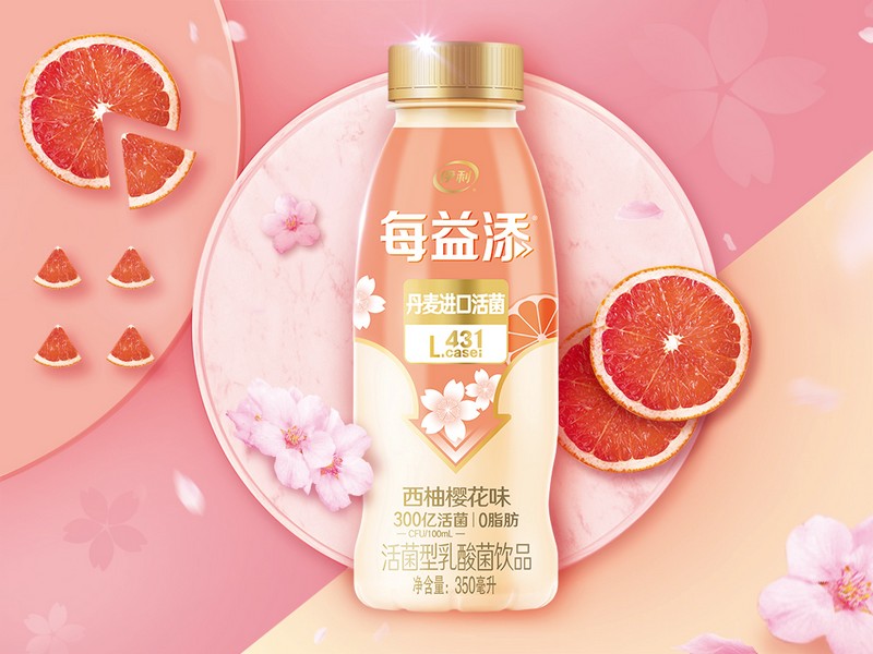 “西柚和櫻花的結(jié)合,花果搭配清新豐富。包裝上,在整體保持每益添品類視覺(jué)基調(diào)的一致性的基礎(chǔ)上,添加了花果設(shè)計(jì)元素。視覺(jué)顏色上傳達(dá)了櫻花和西柚的混合特征,櫻花的粉和西柚的橙結(jié)合,元素搭配上采用‘小即是多’的原則,幾朵櫻花一片西柚表現(xiàn)了每益添‘快樂(lè)簡(jiǎn)單無(wú)負(fù)擔(dān)’的愿景?!庇?8位產(chǎn)品研發(fā)和市場(chǎng)調(diào)研方面的專家組成的評(píng)委團(tuán),圍繞感官體驗(yàn)、理念創(chuàng)新、消費(fèi)者溝通與整體感受等維度,對(duì)每益添西柚櫻花創(chuàng)新口味飲品進(jìn)行了評(píng)鑒,并給出這樣的評(píng)審語(yǔ)。作為伊利旗下唯一專注低溫活性乳酸菌飲品的品牌,每益添始終堅(jiān)持助消化的功能打造,其每100毫升富含300億的丹麥進(jìn)口專屬活菌,從2018年首創(chuàng)百香果創(chuàng)新口味至今,屢創(chuàng)低溫活乳新佳績(jī),引領(lǐng)低溫活乳發(fā)展新潮流。
