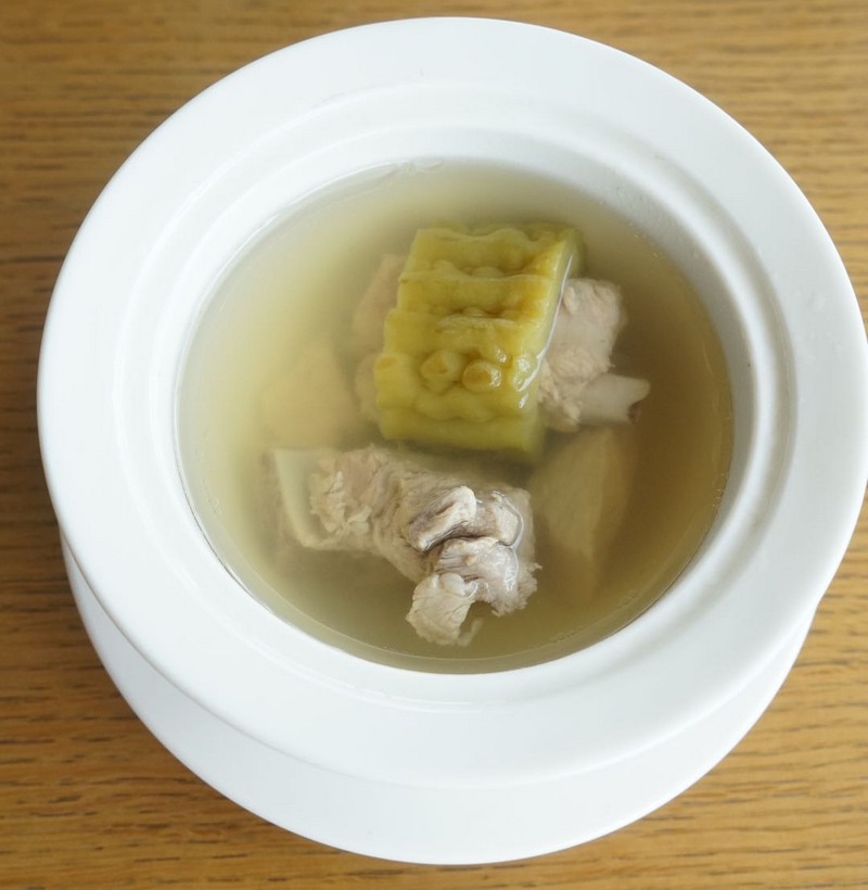 若是清蒸的做法,那么涼瓜的風味恐怕是發(fā)揮到高點。有一做法,將涼瓜與河海鮮的“鮮”結合到一起,同時讓涼瓜吃出清甜來:古法蒸魚頭。魚頭底下墊著的不是絲瓜,而是更加應景的涼瓜。廚師一般用本地的涼瓜,經過稍微的糖漬,令澀味滲出,甜味悄然滲入,待到蒸后,涼瓜吃來清、爽、甘、甜。此外,它吸收了魚頭的鮮。順德餐廳的師傅對魚的制作頗為講究,魚頭的汁醬、蒸魚的火候,都盡在他們的拿捏中。這么一來,原本不愿意吃涼瓜的食客,恐怕也要打破多年來的難忍之情,一吃再吃了。