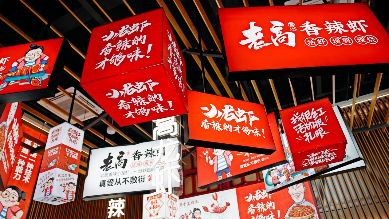 “戀愛(ài)是一種能力,吃蝦是一種技術(shù),我能力有限,技術(shù)卻很高”;“真愛(ài)絕不敷衍”……老高香辣蝦深圳旗艦店的裝修風(fēng)格有了較大創(chuàng)新,以紅色為主色調(diào),店里都是老板的Q版人物形象,還有萌萌噠的燈牌和超酷的打卡墻,超級(jí)適合朋友聚會(huì)、拍照。