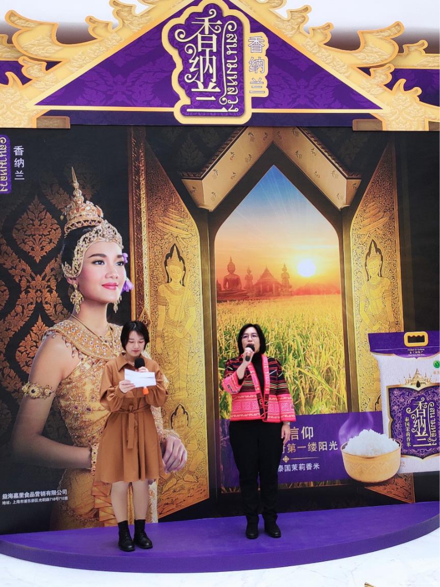 12月7日,香納蘭“泰”好吃樂,陽光之旅/益+秀新米品鑒展示活動在上海金龍魚大廈隆重舉行,益海嘉里集團(tuán)特邀泰王國駐上??傤I(lǐng)事館農(nóng)業(yè)處領(lǐng)事吳佩賢女士參加活動并致辭助力香納蘭,本次活動形式豐富多彩,不僅有干貨十足的泰米知識介紹和專業(yè)泰廚現(xiàn)場教學(xué),還有美味的泰米試吃和有趣的互動游戲。與此同時,本次活動將通過線上直播擴大傳播范圍,讓更多消費者了解香納蘭品牌的同時也能感受到獨特的泰國文化魅力。為了讓中國消費者更進(jìn)一步了解泰國茉莉香米在泰國人民心目中的地位,泰國領(lǐng)事吳佩賢女士在直播間和粉絲做了短暫的分享。