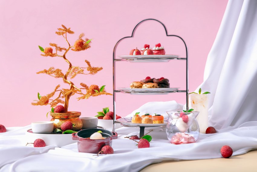 酒店餅房廚師長趙偉匠心獨(dú)運(yùn),使的荔枝和樹莓在傳統(tǒng)下午茶中呈獻(xiàn)別樣風(fēng)情:法式焦糖燉蛋和荔枝的融合,恍若天成,是中西合璧的典范;茶香馥郁,入口冰爽的荔枝茶醬果凍在樹莓的烘托下,順滑似潺潺清露,甘美宜人;當(dāng)樹莓的巧妙微酸邂逅荔枝的清新甜美,一口蛋糕就能捕獲這個(gè)夏天最令人心動(dòng)的瞬間;樹莓和酸奶的邂逅是那么猝不及防,輕咬一口,流心滿溢,香醇和清潤的多層次的口感交疊纏綿,讓人無限回味;那一樹生機(jī)盎然讓人不禁好奇,原來枝頭碩果是妙趣的荔枝蝦球,外脆有聲,內(nèi)里鮮香Q彈,這樣的組合聽來不可思議,只有親試方能體會(huì)海陸鮮甜交匯的真意。