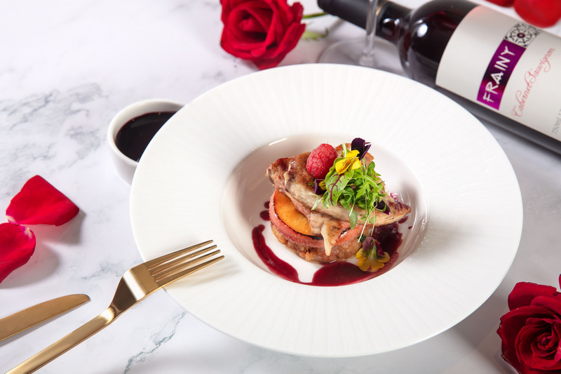 共譜濃情蜜意之夜,怎少得了甜品加乘。酒店餅房行政總廚趙偉以當(dāng)季時(shí)令水果搭配馥郁絲滑的上等巧克力等食材,精心呈獻(xiàn)包括覆盆子蜜桃蛋糕、草莓荔枝蛋糕、咖啡白巧克力櫻桃蛋糕、玫瑰花茶紅酒布丁杯等8款作品。此外,位上菜品新增香煎鵝肝配紅酒焦糖蘋(píng)果和藍(lán)莓紅酒汁及中式牛奶燉花膠糖水,中西風(fēng)味相輔相成,都將成就獨(dú)特的美味記憶。當(dāng)天現(xiàn)場(chǎng)將會(huì)有小提琴手駐場(chǎng)演奏,妙音悅耳,為甜蜜之夜增添更多柔情。