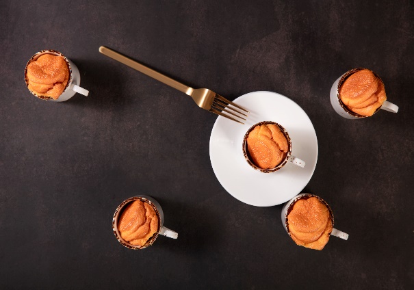 蟹粉舒芙蕾:法式舒芙蕾“蟹”逅質(zhì)地細膩的蟹粉,奶香與蟹香巧妙融合,外表微脆,內(nèi)陷輕盈,一觸舌尖即融化的獨特滋味,更為金秋的夜晚增添幾分甜蜜與釋然。