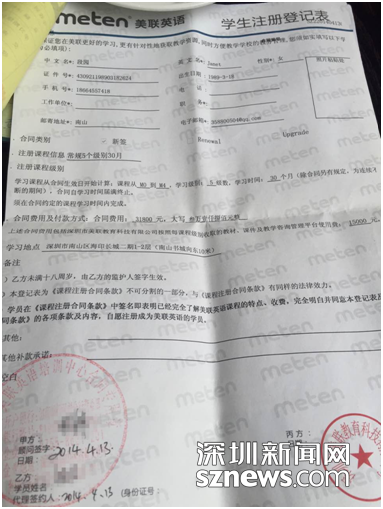 《課程注冊(cè)合同條款》中注明:學(xué)員在該條款中簽名即表明已經(jīng)完全了解美聯(lián)英語(yǔ)課程的特點(diǎn)、收費(fèi)
