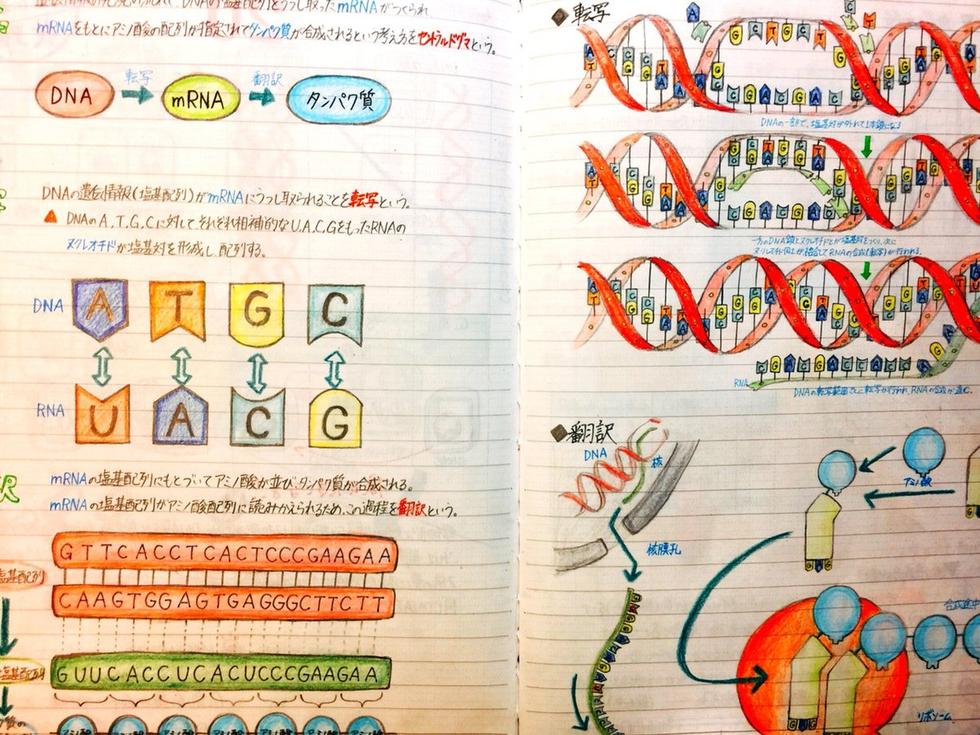 近日,一名日本男生在網(wǎng)上公布了自己高一時的筆記,生物、地理等等課程的筆記在他的筆下變得生動有趣起來,堪比教科書。圖/Twitter用戶@おおしま