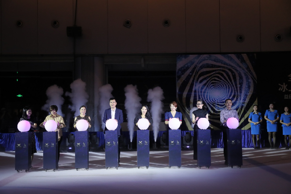 在倒數(shù)聲中,益田旅游商業(yè)集團(tuán)副總裁孔德政、副總裁王蕊、益田假日廣場(chǎng)總經(jīng)理劉玲與全明星滑冰俱樂部總裁王睿,gaga鮮語(yǔ)創(chuàng)始人馮敏, DISSONA全國(guó)營(yíng)運(yùn)總經(jīng)理王立穎及VIP代表,共同按下激光裝置,10000只氣球組成的藍(lán)色鯨魚散落冰面,瞬間暈染為一片藍(lán)色海洋,也正式宣告“益田假日廣場(chǎng)十周年”系列活動(dòng)的開啟。