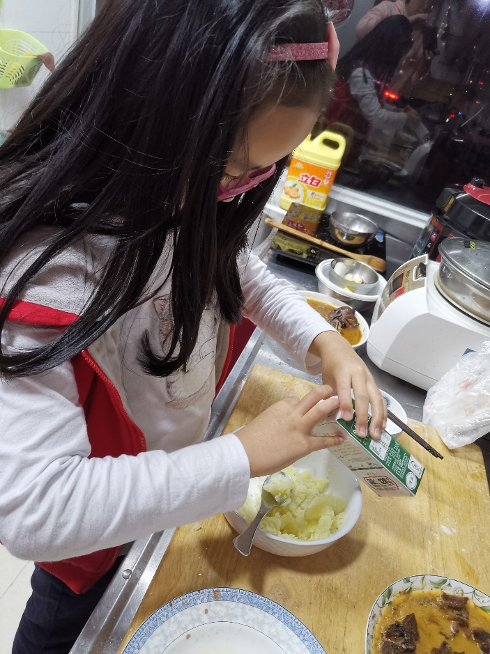 我們 經(jīng)常給奶奶打下手,烹飪也是其樂(lè)無(wú)窮。茜茜最喜歡的是可以媲美橡皮泥的面食,捏來(lái)捏去很有趣,還可以嘗試些喜歡的食物,土豆泥,曲奇,等等。