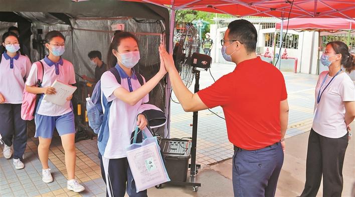 見圳客戶端·深圳新聞網(wǎng)2020年7月21日訊 昨日,深圳市2020年中考順利開考。全市8萬多名考生分赴10個考區(qū)、151個考點參加考試,各項考務工作有條不紊。記者在深圳市招考辦獲悉,中考首日,各考點在嚴格組織好考務工作的同時,為考生提供多種貼心服務,獲考生、家長贊譽。