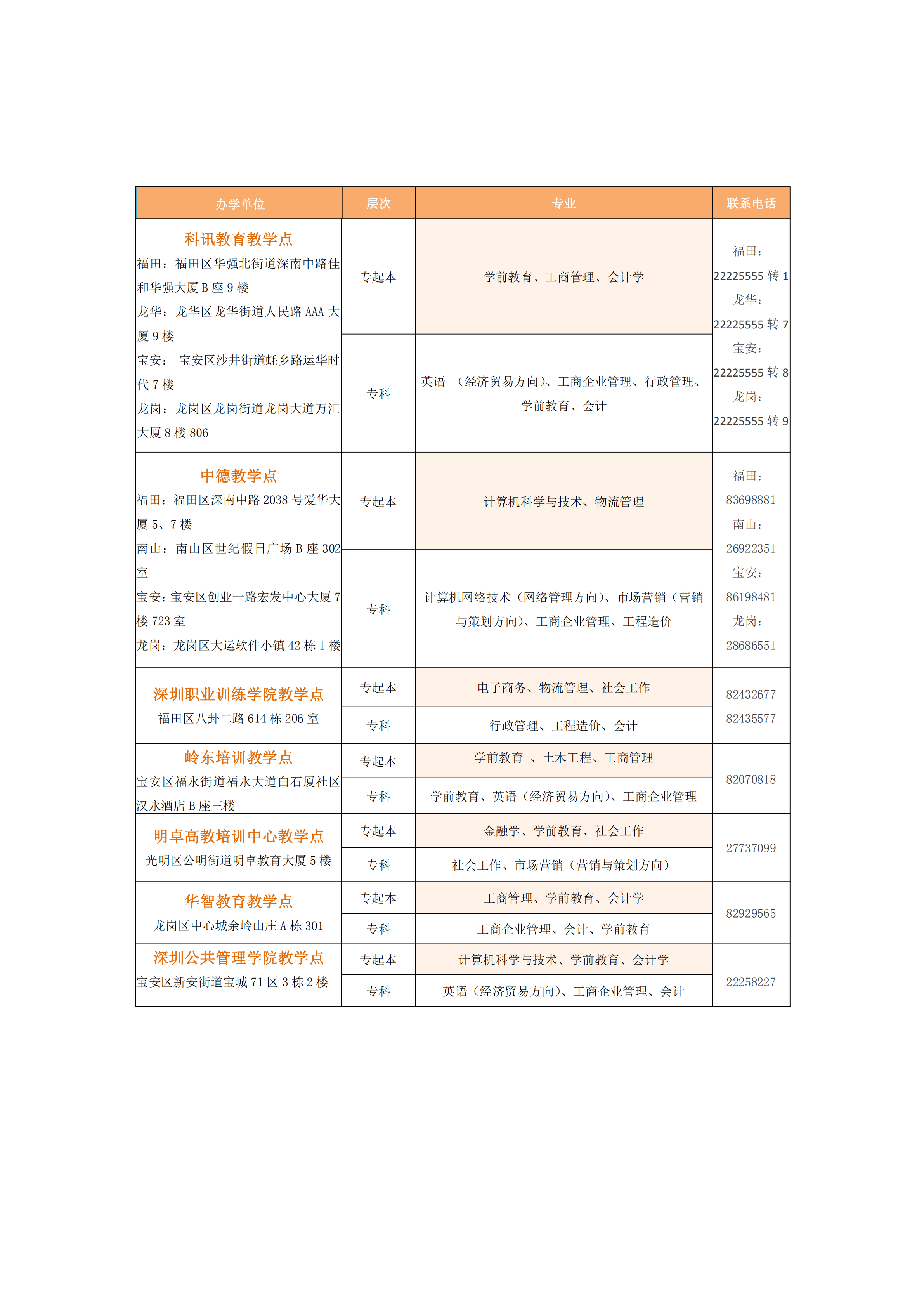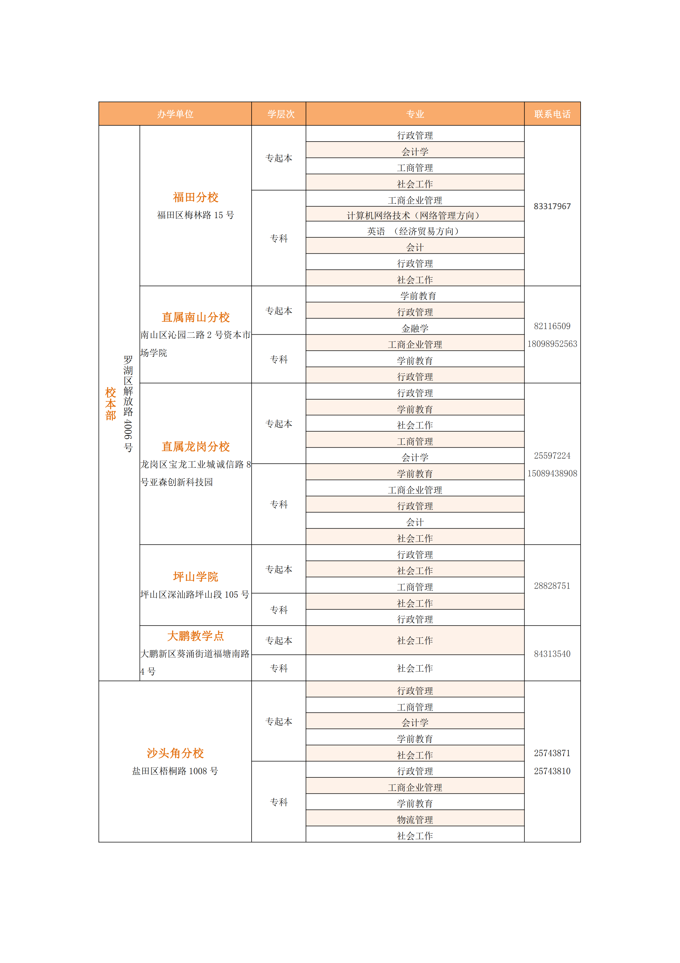 說明:報讀分校、學院、教學點者,請聯(lián)系各分校、學院、教學點辦理報名手續(xù)。