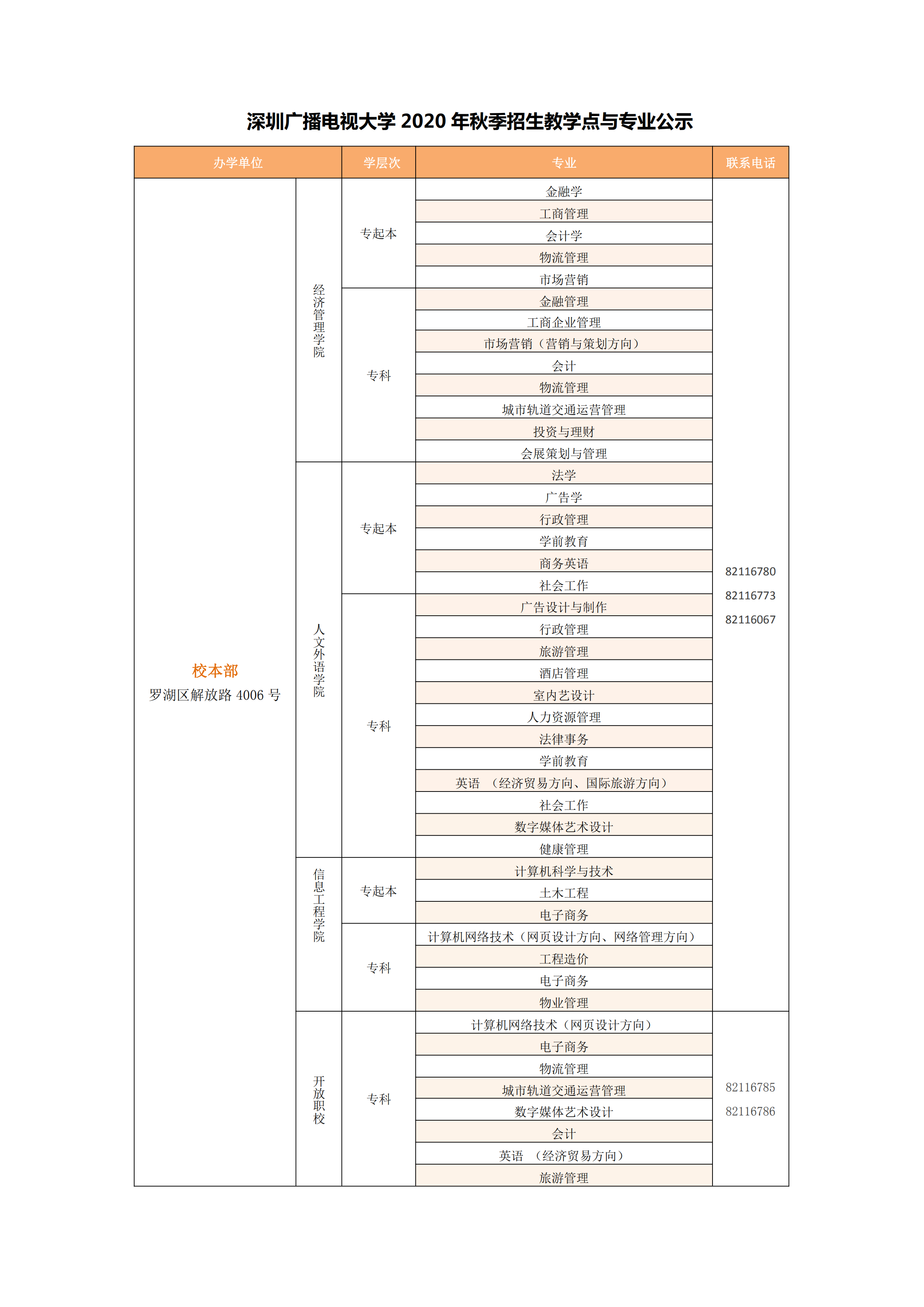 特別聲明:深圳廣播電視大學【國家開放大學(深圳)】是唯一在深圳地區(qū)招收開放教育??破瘘c本科、??茖W生的公辦高校。除學校公示的教學點外,其它任何以國家開放大學或廣播電視大學名義在深圳市范圍內招生的機構和個人均屬違規(guī)招生,報讀者謹防受騙。監(jiān)督電話:0755-82116067。
