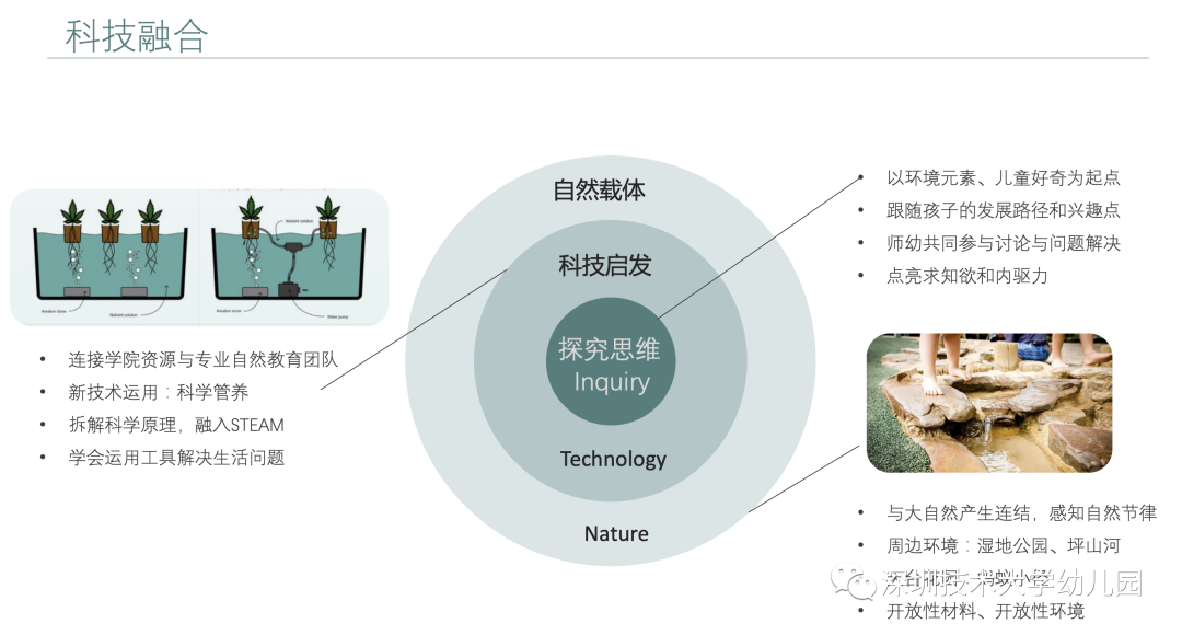 園舍內(nèi),聯(lián)動大學(xué)學(xué)院資源和專業(yè)自然教育團隊打造自然教育場所,使得科技與自然在幼兒環(huán)境中有機結(jié)合。自然在前,技術(shù)運用在后,孩子將用探究的眼光發(fā)現(xiàn)如何運用技術(shù)解決生活問題。