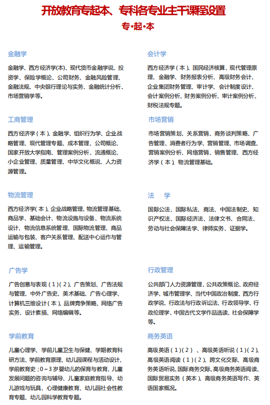 專科起點(diǎn)本科專業(yè):具有國民教育系列相同或相近專業(yè)高等??疲ê瑢?疲┮陨蠈W(xué)歷者。