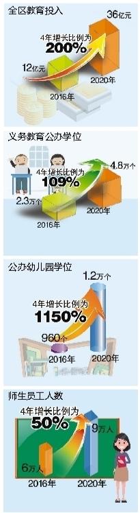 加大教育投入,教育支出增長200%;加快公辦學(xué)校和幼兒園建設(shè),公辦幼兒園從2所增加到31所,公辦園學(xué)位從960個增加到1.2萬個,增長1150%;新建、擴(kuò)建公辦中小學(xué)12所,義務(wù)教育公辦學(xué)位從2.3萬個增加到4.8萬個,增長104%。短時期內(nèi)實(shí)現(xiàn)公辦學(xué)位保障率全市遙遙領(lǐng)先。
