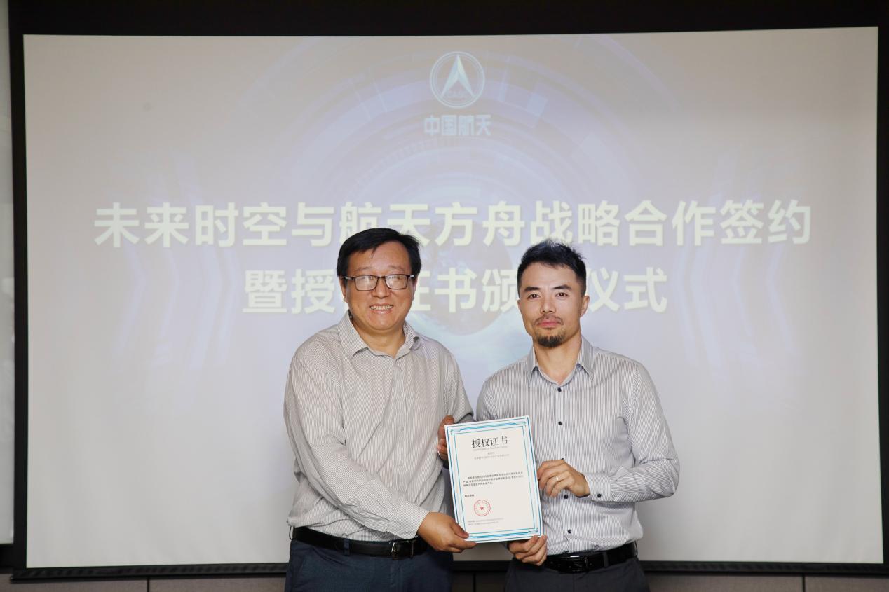 見圳客戶端·深圳新聞網(wǎng)2021年5月31日訊 (記者 陳彬)為深入推進航天科技文化技術(shù)在社會生活、人民健康、科普教育、素質(zhì)教育和文化產(chǎn)業(yè)等領(lǐng)域的成果轉(zhuǎn)化和廣泛應(yīng)用,在中國航天系統(tǒng)科學(xué)與工程研究院有關(guān)領(lǐng)導(dǎo)的關(guān)心幫助下,未來時空(深圳)文化產(chǎn)業(yè)有限公司和北京航天方舟空間技術(shù)有限公司就航天文創(chuàng)產(chǎn)品開發(fā)、航天康養(yǎng)項目建設(shè)、航天科普教育及商業(yè)化航天器應(yīng)用等方面達成了全面合作,于5月28日上午在北京簽署戰(zhàn)略合作協(xié)議并頒發(fā)授權(quán)證書。