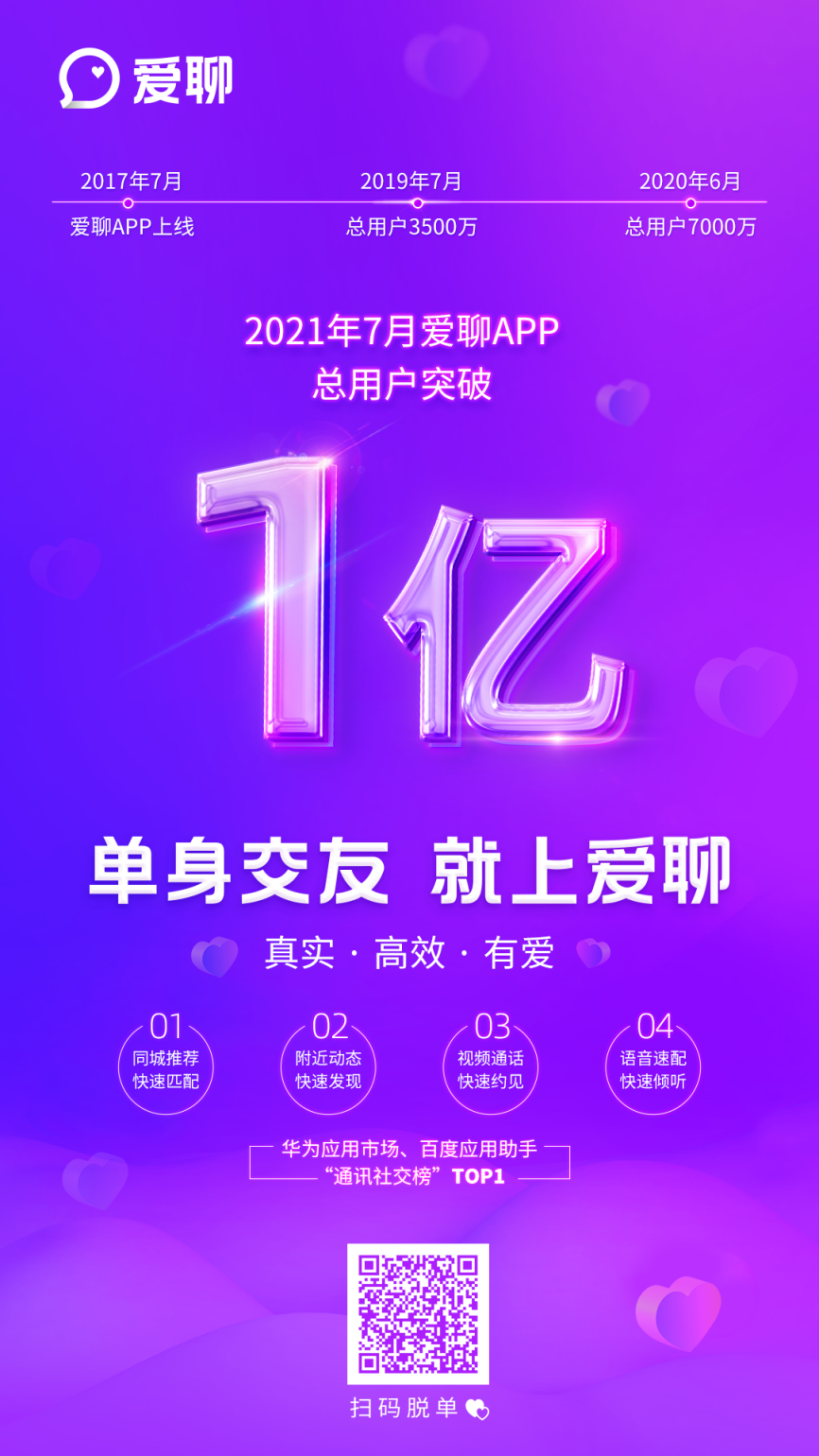作為事件主人翁,愛(ài)聊近期頻頻發(fā)聲。從7月2日品牌升級(jí),煥新品牌視覺(jué)形象,全新定位單身交友,到7月26日,對(duì)外宣布注冊(cè)用戶超1億,引起行業(yè)關(guān)注。今年,這匹社交黑馬以魚(yú)躍之姿,一舉打開(kāi)知名度,吸睛無(wú)數(shù),各平臺(tái)下載指數(shù)飆升。從“社交黑馬”到“單身交友破局者”,創(chuàng)新性主打真實(shí)和高效,贏得用戶信賴(lài)的背后,且看愛(ài)聊一億用戶的增長(zhǎng)戰(zhàn)略。