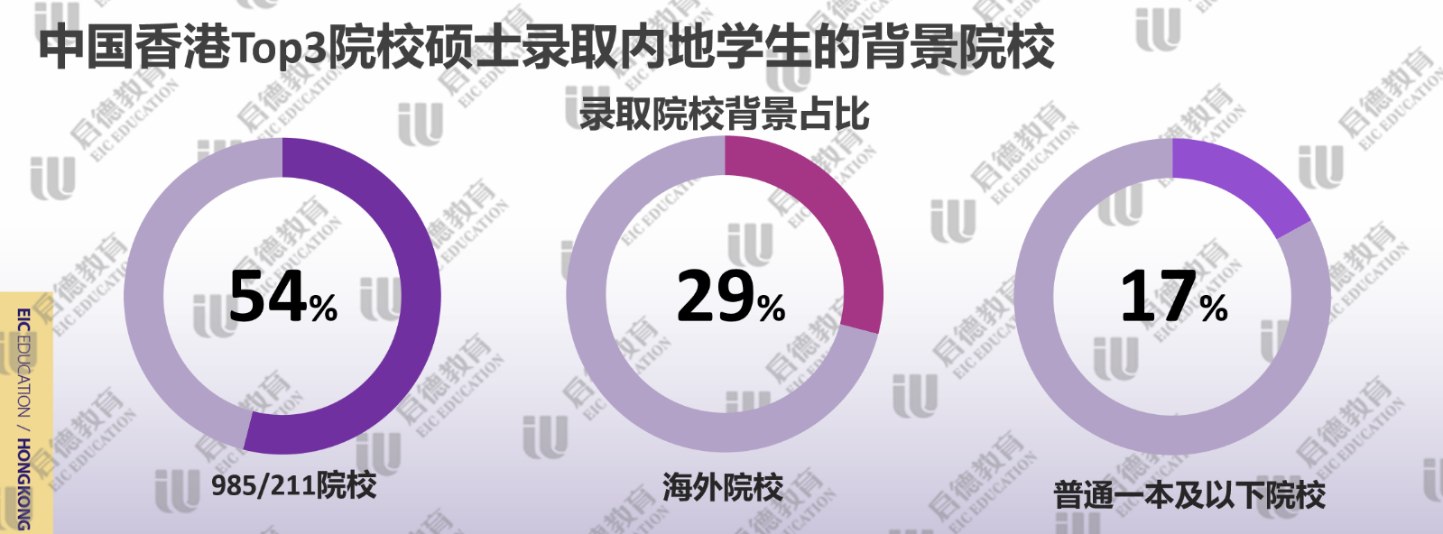 申請(qǐng)香港高校提交雅思成績較多,啟德留學(xué)2021客戶服務(wù)數(shù)據(jù)顯示,近3成錄取學(xué)生雅思成績達(dá)到7分或以上,主要集中在金融、會(huì)計(jì)、傳媒、英語教育等熱門專業(yè);雅思達(dá)到6.5分占比幾乎一半,代表了香港高校錄取學(xué)生的平均水平;雅思6分占比不到四分之一,主要分布于理工科或冷門專業(yè)。香港TOP3名校(香港大學(xué)、香港科技大學(xué)、香港中文大學(xué))錄取的碩士學(xué)生中,985/211院校背景的學(xué)生超過了一半;因疫情因素導(dǎo)致海外留學(xué)生的回流,近30%的碩士學(xué)生來自于海外院校本科;雙非院校的占比僅為17%,集中于需要豐富實(shí)習(xí)和工作經(jīng)驗(yàn)的理工科。擁有實(shí)習(xí)/科研等經(jīng)歷占比為99%,其中,超八成學(xué)生完成了3次以上的實(shí)習(xí)/科研。