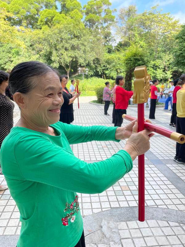 讀特客戶端·深圳新聞網(wǎng)2021年11月26日訊(記者 陳彬)這一兩個(gè)月來,每天早上,有一群精氣神十足的阿姨們,手持一種舞蹈道具,在南頭古城臨中山公園的地方,非常有意思地跳著一種舞蹈,成為了南頭古城的一道風(fēng)景。在她們舞蹈時(shí),時(shí)不時(shí)會(huì)有路人走近好奇地問:阿姨,你們這是在跳一種韓國舞蹈、還是日本舞蹈?她們會(huì)指著旁邊的KT板展架說:好好看看那上頭,學(xué)習(xí)學(xué)習(xí)我們中國文化。