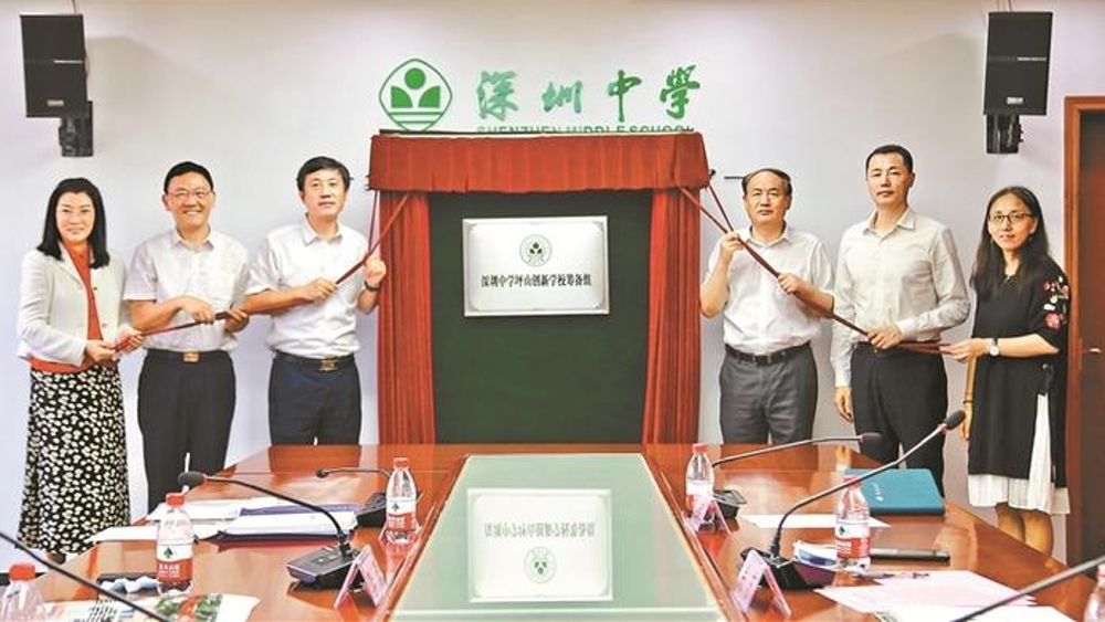 深圳中學(xué)坪山創(chuàng)新學(xué)校籌備組掛牌儀式在深圳中學(xué)高中部舉行。