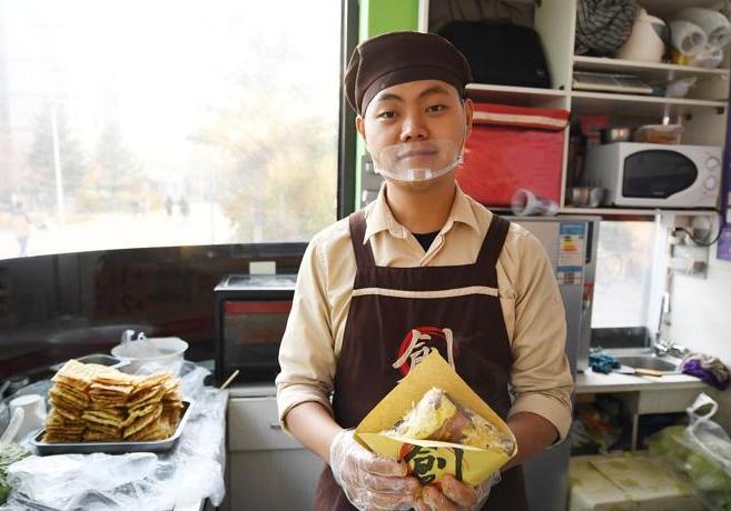 今年29歲的林曉旭是吉林大學(xué)畢業(yè)生,幾個(gè)月前,他辭去了知名國(guó)企的工作,回到母校開(kāi)起了一家煎餅店做起“煎餅俠”,受到學(xué)生們的歡迎。
