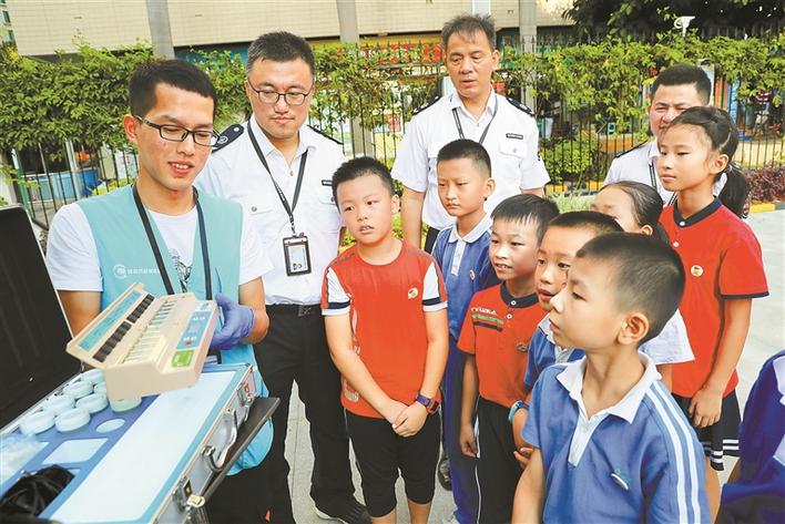 在寶安區(qū)濱海小學,該校三年級6個班約300名學生齊聚這里,參加了一場別開生面的校園食品安全游園會活動。