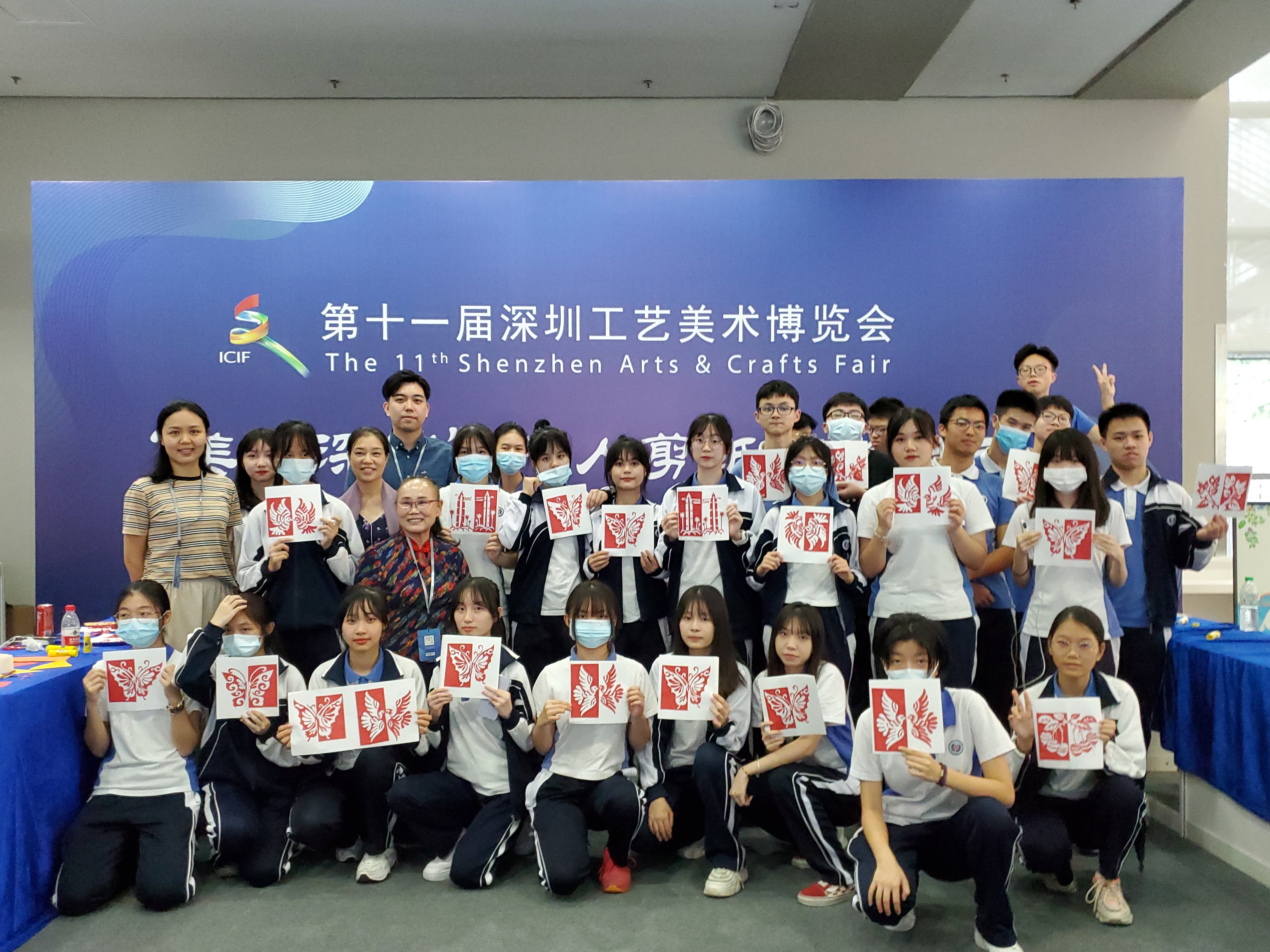 福田區(qū)非物質文化遺產(chǎn)“剪紙(袁氏)”代表性傳承人、深圳市剪紙藝術協(xié)會會長袁曼君老師攜傳承人黃原參加展會,并帶來了“剪紙里的福田”系列作品,以剪紙作品獻禮深圳經(jīng)濟特區(qū)建立40周年。