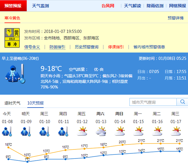 深圳新聞網(wǎng)1月8日訊(記者 何暢)據(jù)深圳市氣象臺(tái)8日5:25發(fā)布,深圳預(yù)計(jì)8-9日受強(qiáng)冷空氣影響,陰天有小雨,氣溫逐漸下降,8日傍晚前后降至9℃,北風(fēng)加大,沿海和高地最大陣風(fēng)8-9級(jí)左右,9日最低氣溫降至7℃左右,北部及山區(qū)再低1-2℃;展望10日起雨停,轉(zhuǎn)多云到晴,空氣干燥,早晚寒冷。