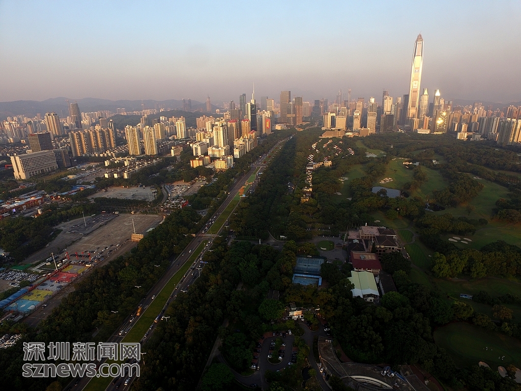 從高空俯瞰,深南大道就位于深圳高爾夫俱樂部球場旁邊