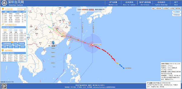 深圳臺風(fēng)網(wǎng)顯示的第8號臺風(fēng)“瑪莉亞”移動軌跡