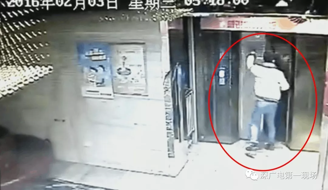 這名男子也是從遠(yuǎn)處飛奔向電梯一腳就踹開(kāi)了廂門(mén),然后不小心踏空掉下了電梯井。