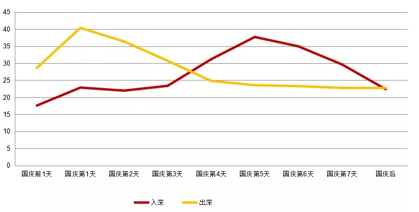 “國慶”假期的前2天為各離深高速公路壓力最大的時間,G4廣深高速會提前半個小時進入多車狀態(tài),中午11時全市高速車流量達到峰值。