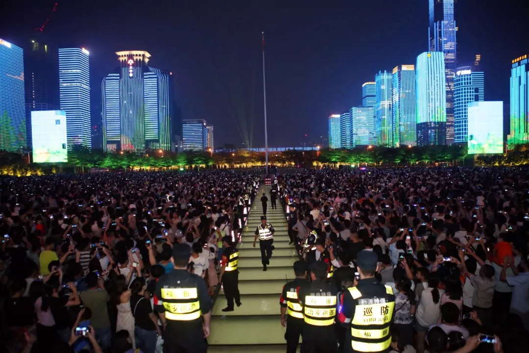 深圳市民中心是開放式場地,每天下午18時許,龐大的人流開始從四面八方涌來觀看燈光秀,給周邊道路交通和現(xiàn)場管理帶來極大壓力。福田警方周密部署、科學設置“七道防線”和“八片防區(qū)”,設立現(xiàn)場指揮中心,采取“核心封控、近端管控、遠端疏導”的方式疏導擁擠人流。劃分管控區(qū)域、加裝現(xiàn)場防沖撞設施、開展武裝巡邏;各部門捆綁作業(yè)、疏散有序、措施到位。