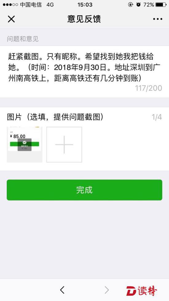 可由于高鐵上網絡信號不好,李先生的微信支付一直顯示是"處理中",過了一分鐘才顯示轉帳失敗,而這時,高鐵已經到了廣州南站,李先生又下了車,在廣州南站下車的乘客中找了幾分鐘,但沒有找到這個女孩。由于自己也要在廣州南站轉車,李先生時間也很緊,就匆忙上了下一趟去武漢的火車。