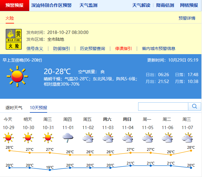 氣象專家提醒,近期我市天氣持續(xù)干燥,火險(xiǎn)風(fēng)險(xiǎn)高,建議市民注意用火安全;31日-11月2日沿海和高地北風(fēng)大,建議市民避免海上活動(dòng)和海島旅游,提前安排出行;“玉兔”進(jìn)入南海后期路徑和強(qiáng)度變數(shù)較大,請(qǐng)關(guān)注深圳市氣象臺(tái)發(fā)布的最新信息。深圳特區(qū)報(bào)訊(記者方勝)