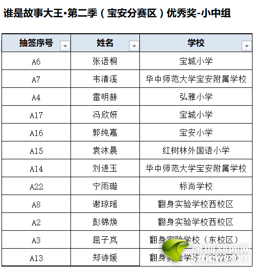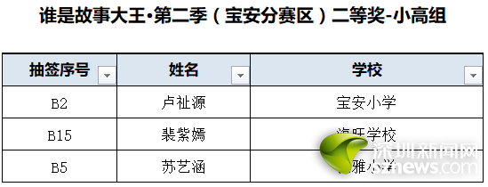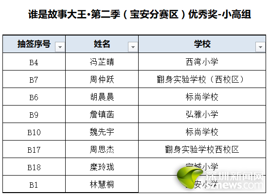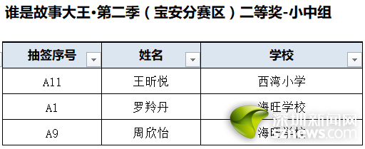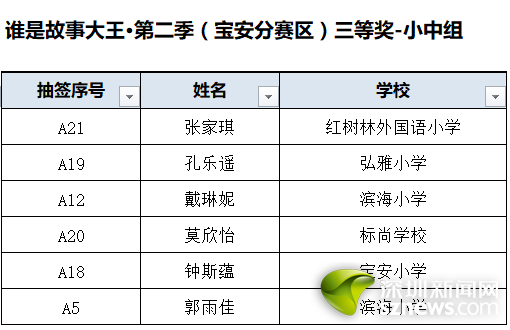 誰(shuí)是故事大王·第二季(寶安分賽區(qū))獲獎(jiǎng)名單: