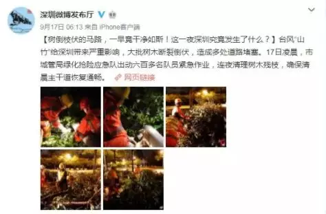 臺(tái)風(fēng)“山竹”肆虐時(shí),“深圳發(fā)布”第一時(shí)間發(fā)布臺(tái)風(fēng)登陸的微信,不到一小時(shí),閱讀量就達(dá)到了10W+,發(fā)布信息的及時(shí)獲得了網(wǎng)友的一致點(diǎn)贊。臺(tái)風(fēng)期間更是24小時(shí)不間斷發(fā)布信息,并設(shè)置??箵襞_(tái)風(fēng)山竹#專題,協(xié)調(diào)全市政務(wù)新媒體矩陣全力開(kāi)展信息聯(lián)動(dòng)發(fā)布工作。