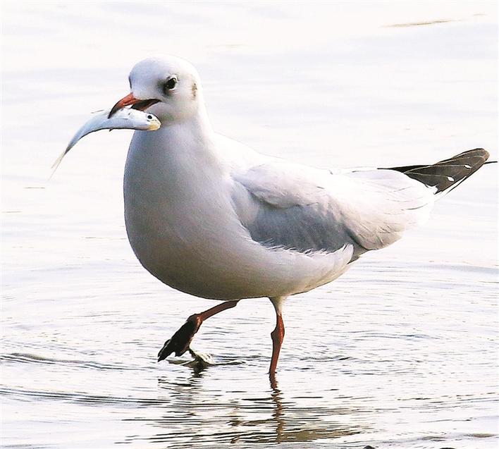 再往東去,便是深圳河入???這里也是深圳河與新洲河的交匯處。在這里,除了5只黑臉琵鷺正在河口覓食,河面上還聚集著上千只紅嘴鷗。每當(dāng)疏浚河道的船只駛過,紅嘴鷗就成群結(jié)隊(duì)地尾隨著船只的航跡,捕食被船槳翻到水面上的魚蝦。
