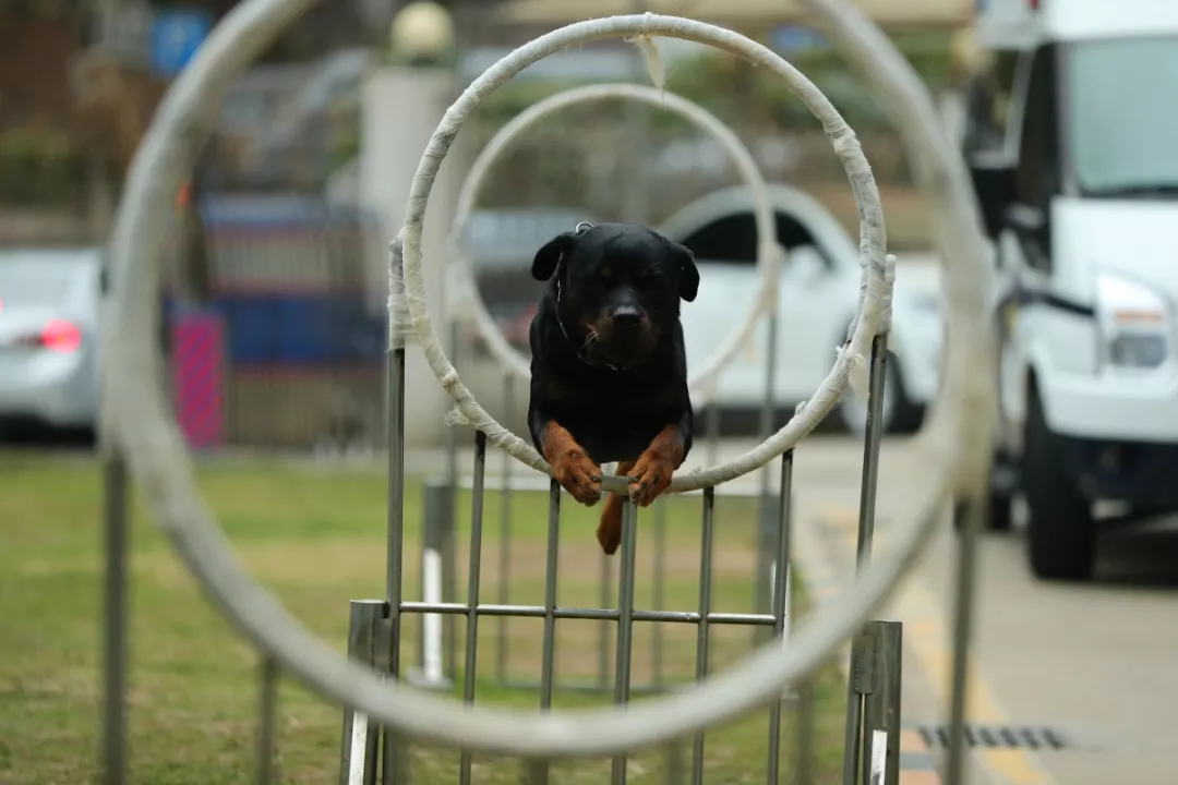 大家好,我是威威,今年5歲,相當于人類的壯年。如果有一種警犬能夠做到不怒自威,那就是我——羅威納犬。我長得豹頭環(huán)眼,烏黑間黃,脖粗體健,動作迅猛,氣勢強悍,是世界上最具勇氣和力量的犬種之一,所以訓導員譚學明給我取名威威。