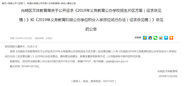 深圳新聞網(wǎng)2019年1月9日訊(記者 劉婷)近日,光明區(qū)文體教育局發(fā)布《光明區(qū)2019年義務(wù)教育階段公辦學位積分入學派位試行辦法(征求意見稿)》(以下簡稱《征求意見稿》)。