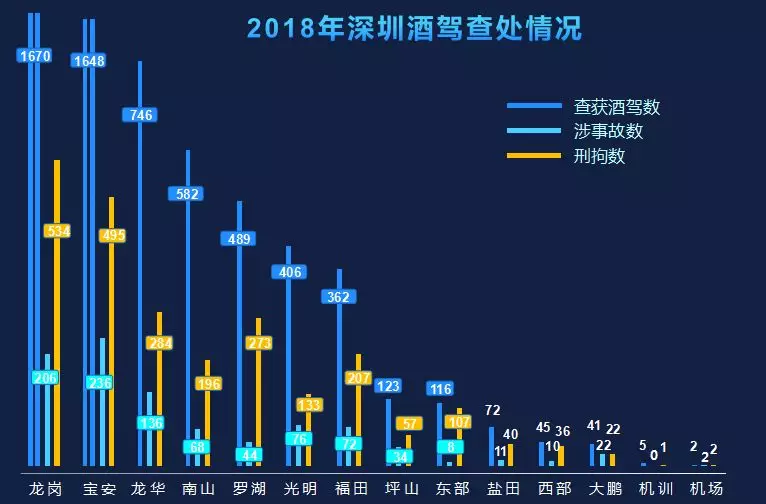 2018年深圳交警共受理危險駕駛案6687宗,立案6307宗6313人,處置醉酒駕駛6313人,全部采取了刑事強制措施。涉及酒駕事故925宗,占總數(shù)的14.65%。此外,2018年辦理阻礙執(zhí)法案85宗89人,行政拘留74人,教育警告15人;辦理妨害公務(wù)案7宗,刑事拘留7人。